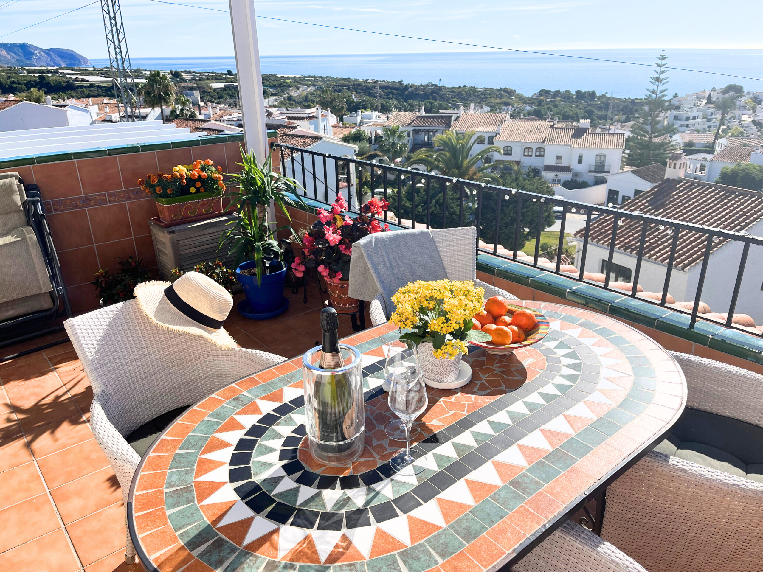 A sunny and quiet location with fantastic views of the sea, mountains and Nerja.