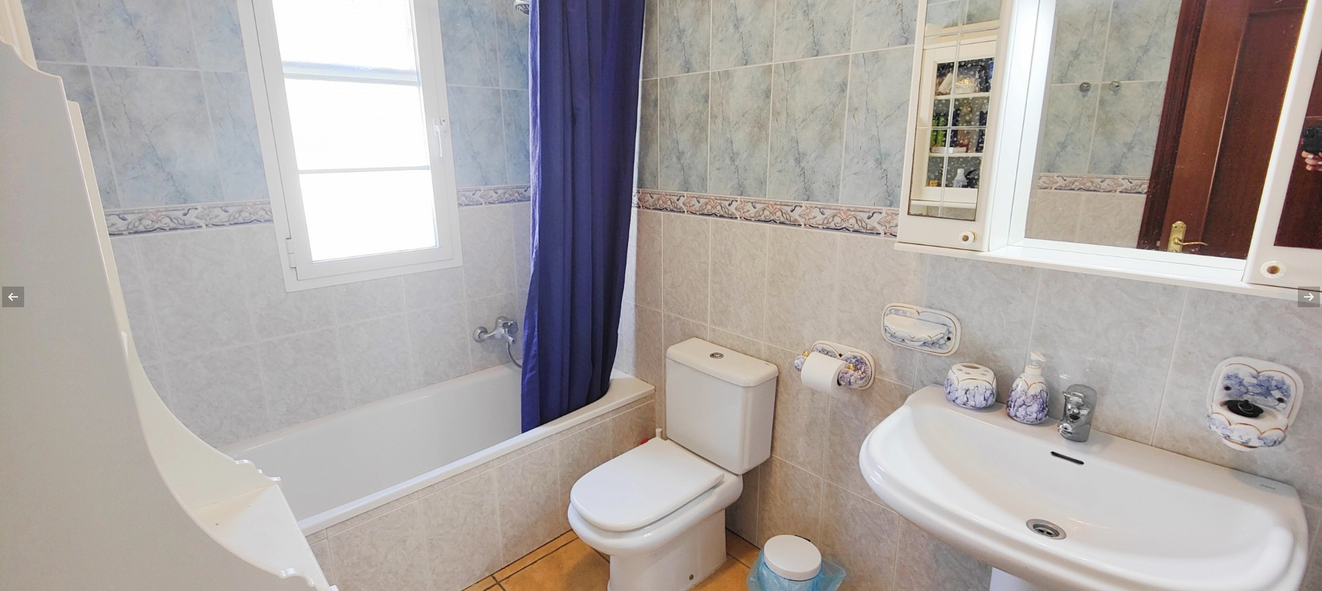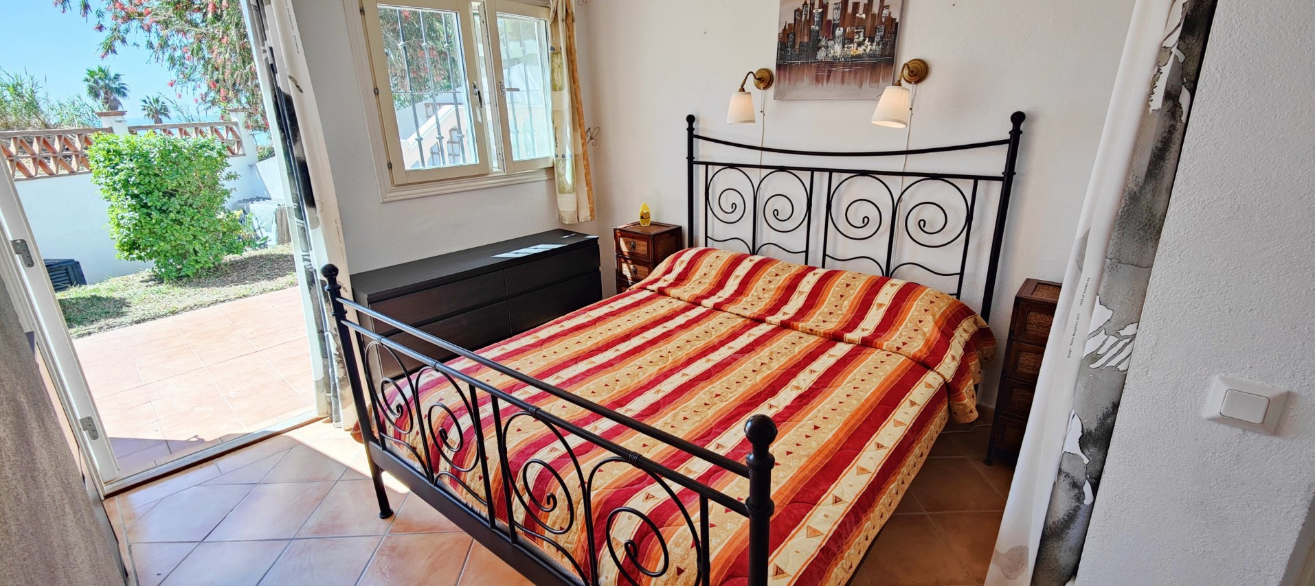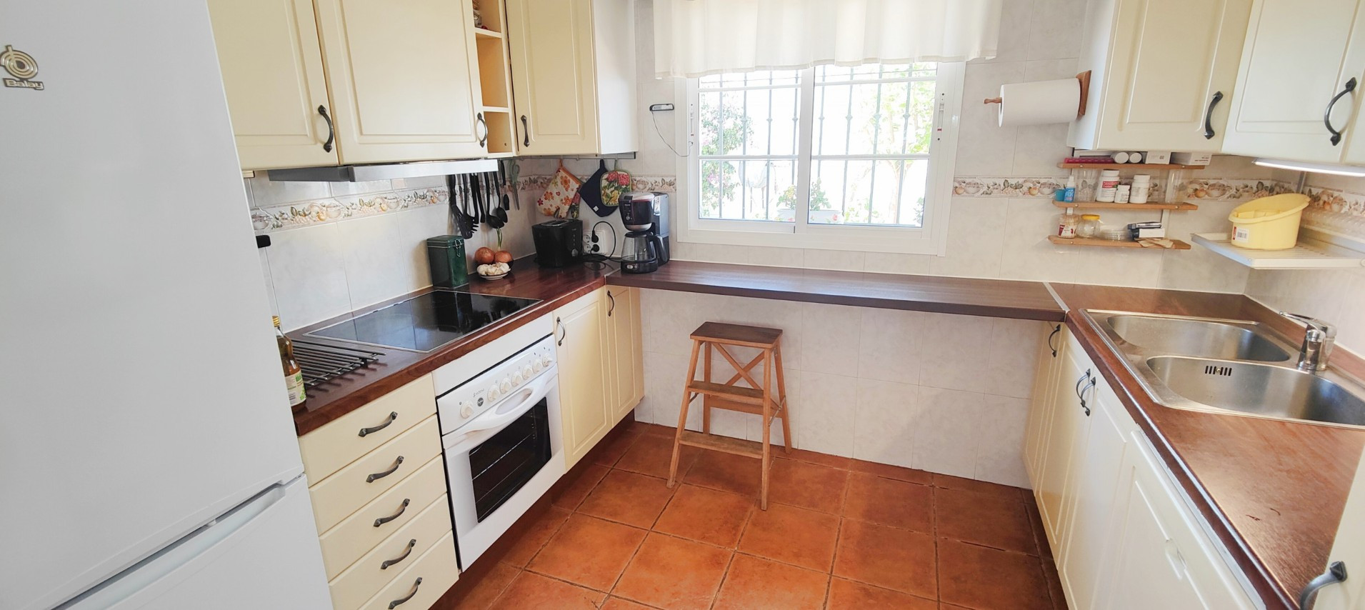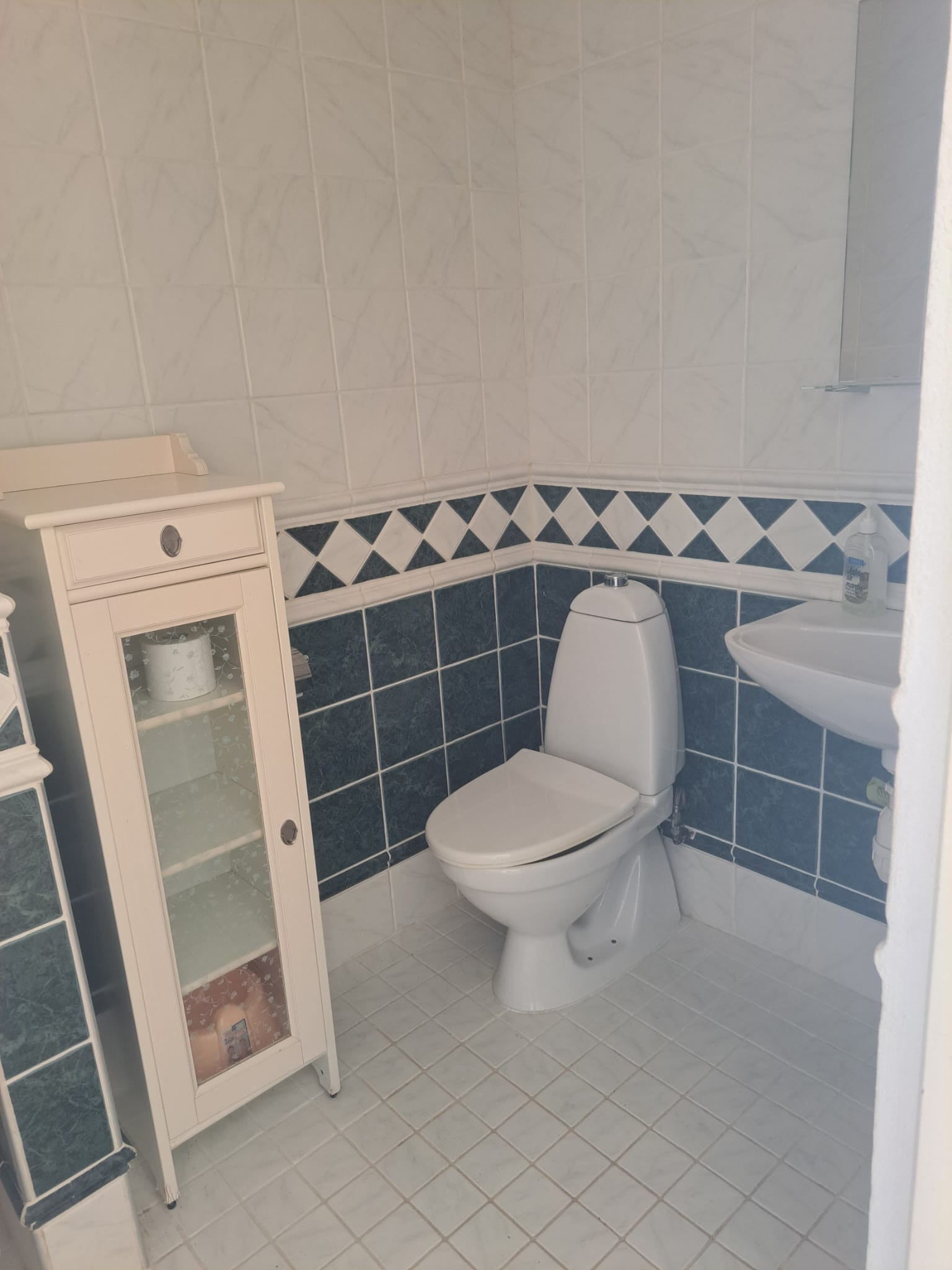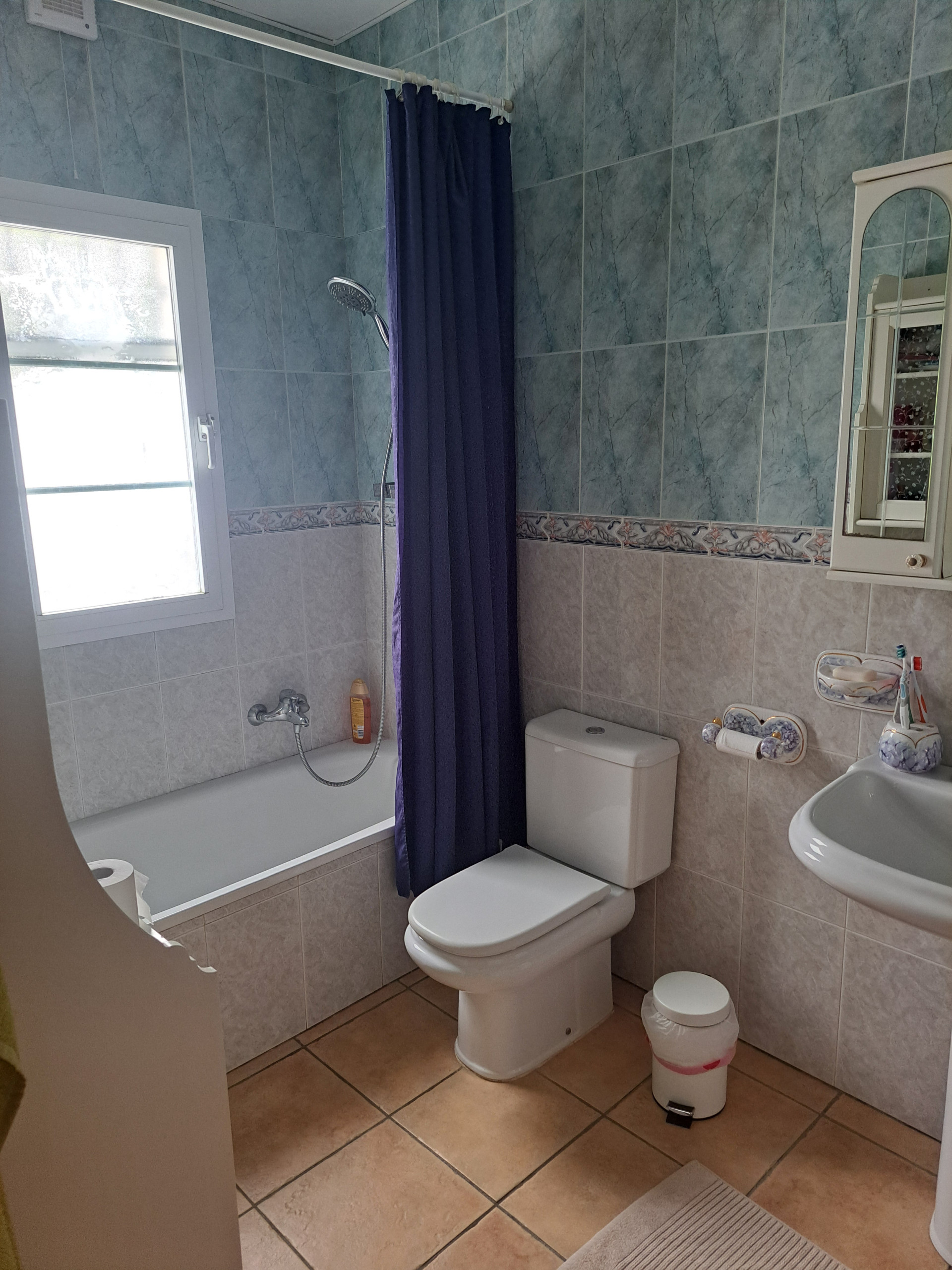 When entering there is a large gated private parking space for up to two cars, the living space is distributed over 2 floors and consists of the following: the ground floor has one small bedroom with a single bed and a wardrobe, a guest toilet, a fully-fitted kitchen that is equipped with all the necessary utensils, crockery, fridge-freezer, electric oven and ceramic hob, toaster, coffee machine, microwave, washing machine and dishwasher.