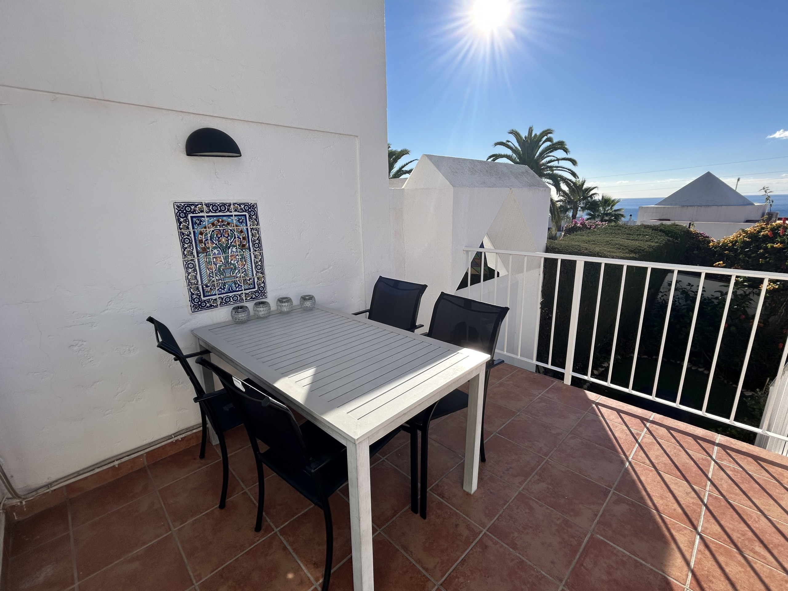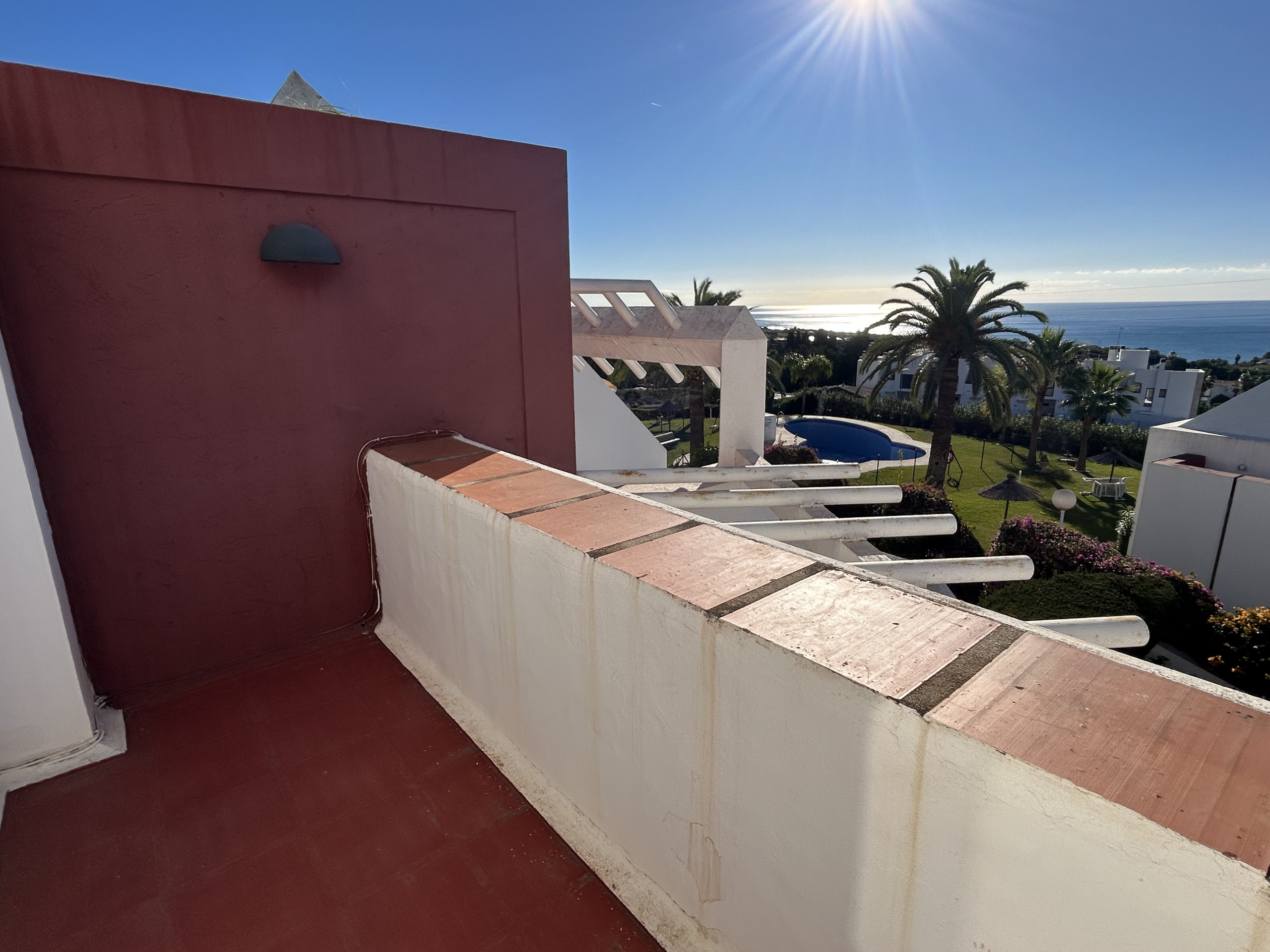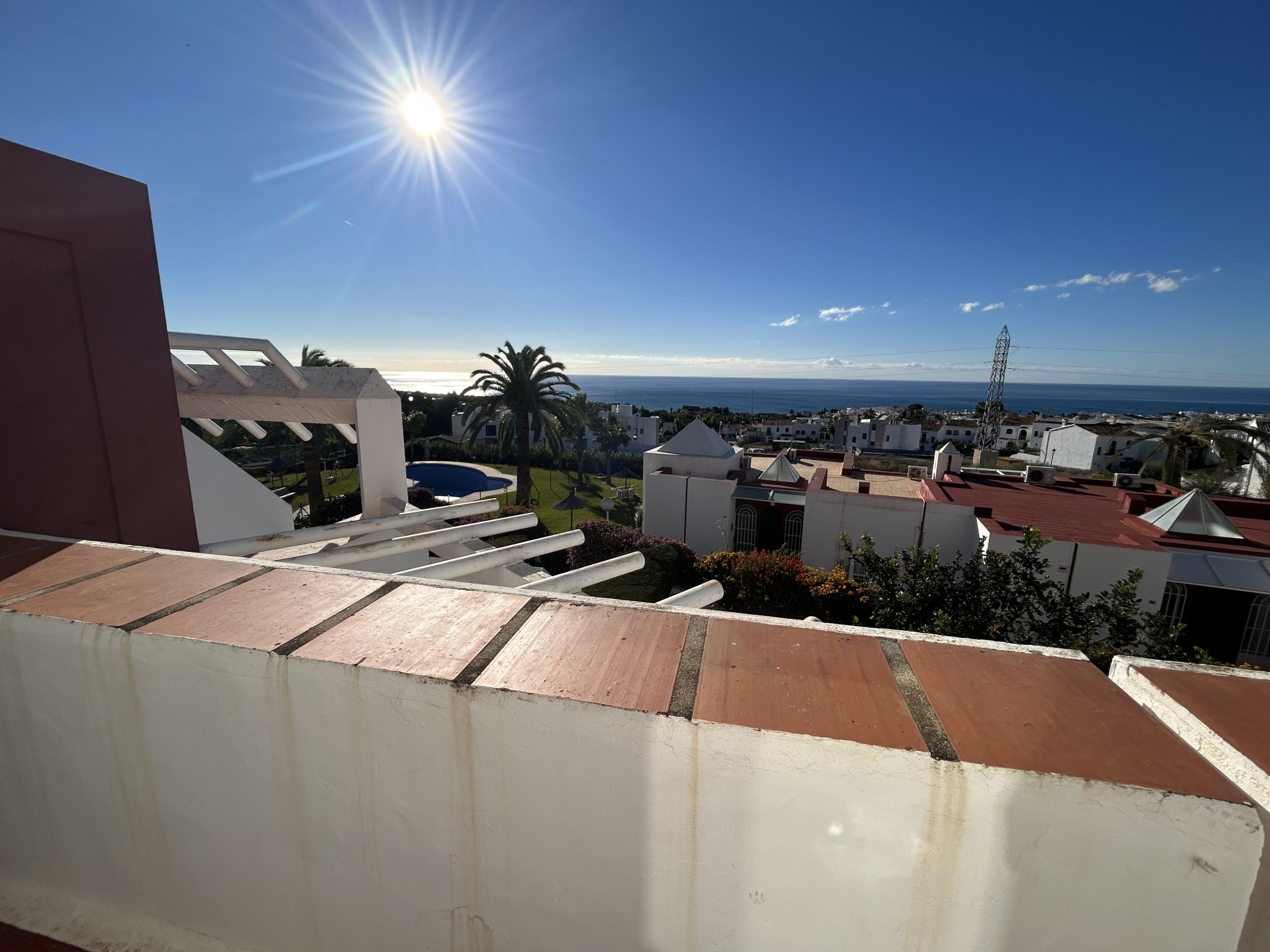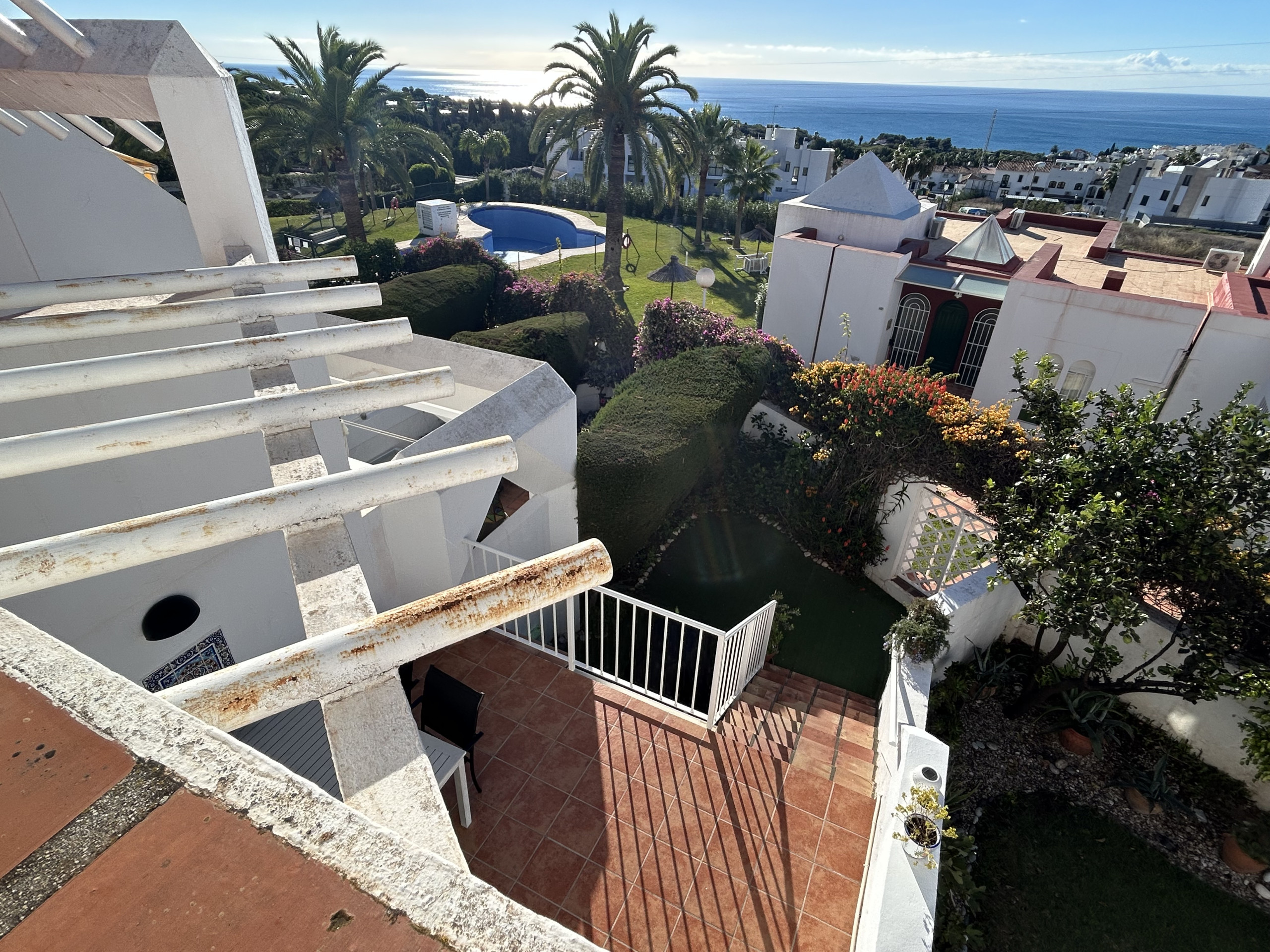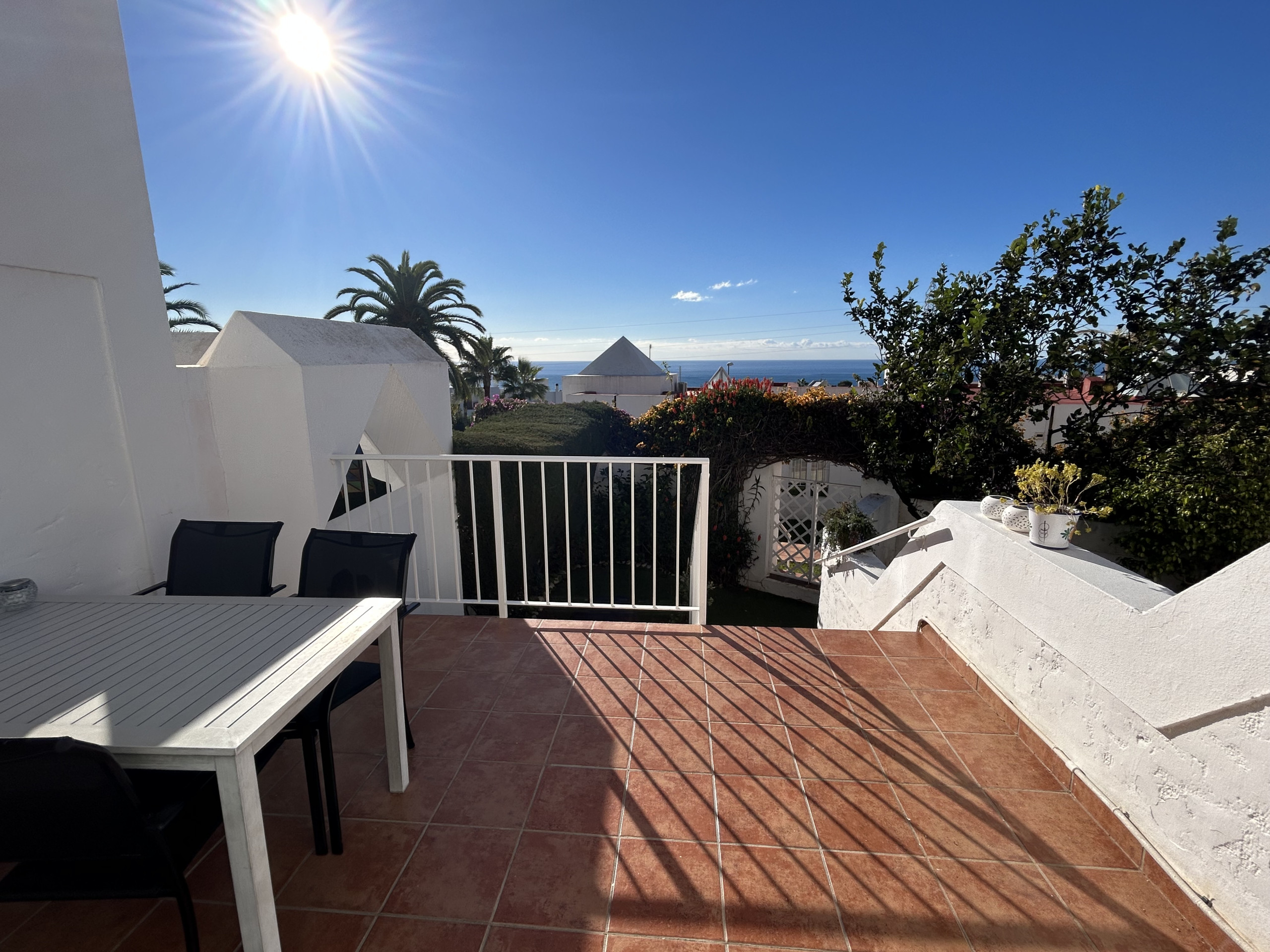 mountains, the roof terrace has sun all day. There is also a terrace on the second floor which has a north facing position with nice mountain views if you need shade in the afternoon. From the upstairs bedroom there is also a balcony which has lovely pool and sea views as well as views over the whole of Nerja.